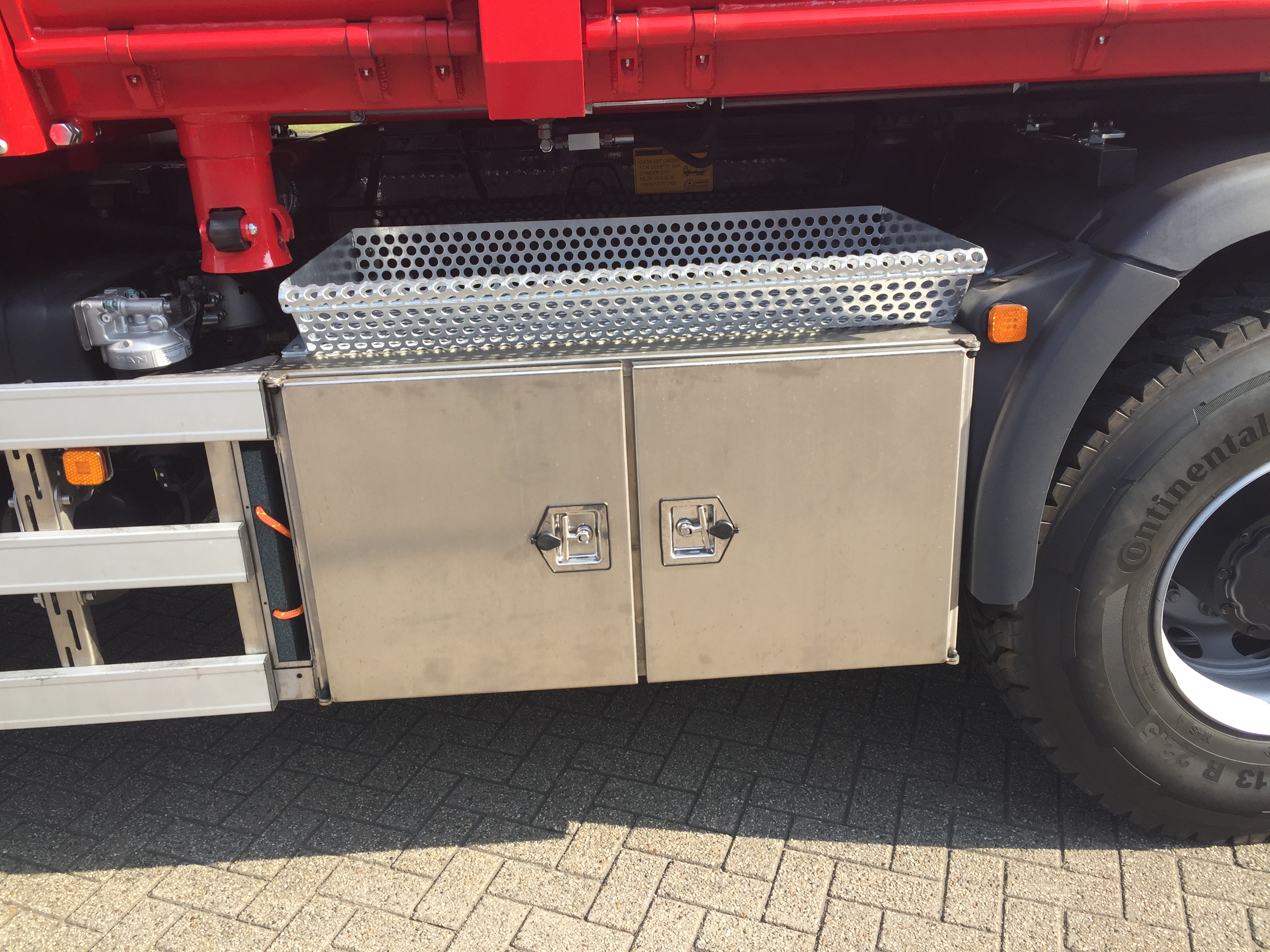 Met hydraulisch zijbord aan de chauffeurszijde.