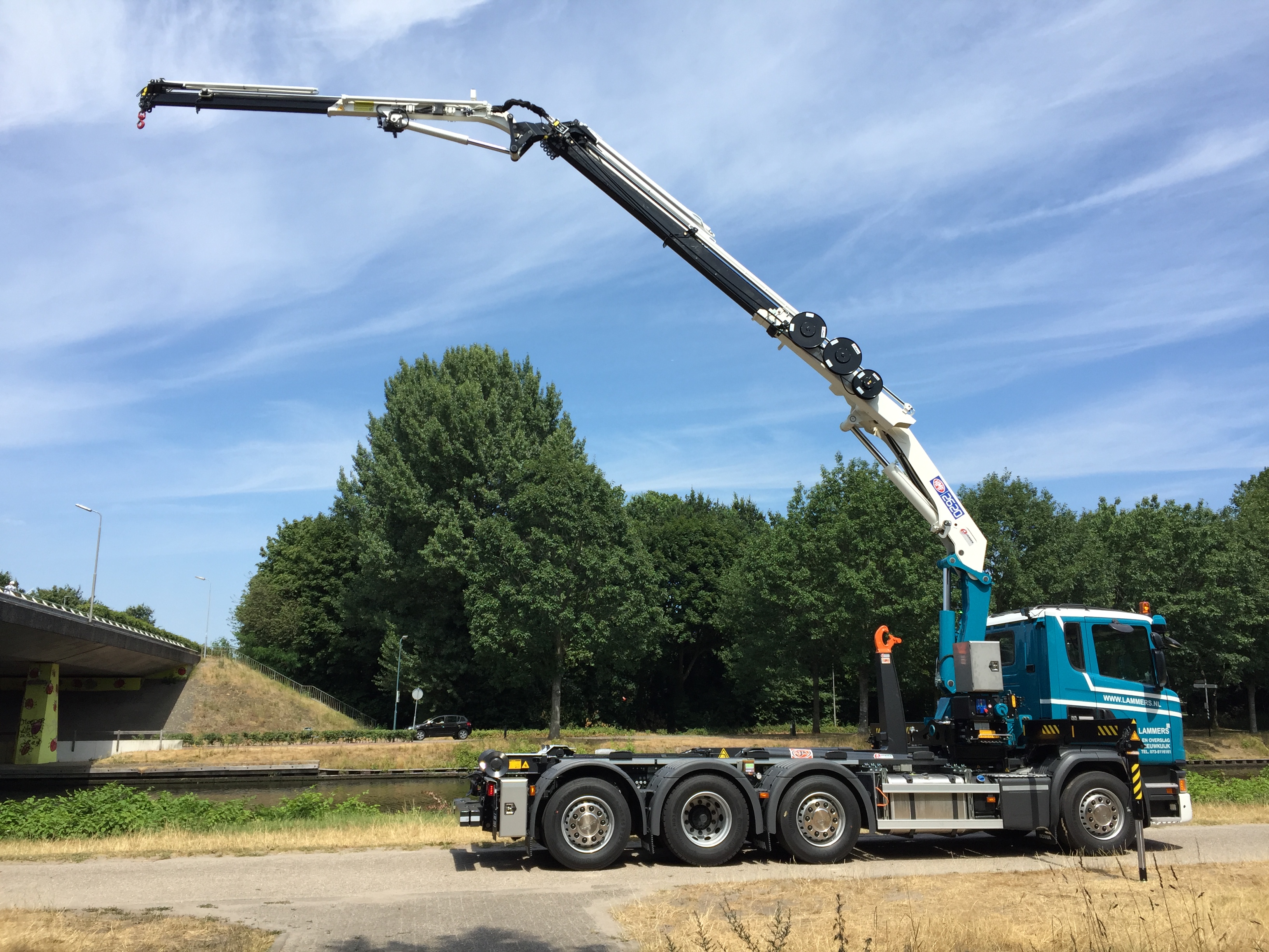 HMF autolaadkraan met een JHS haakarmsysteem voor Transportbedrijf Gerard Lammers