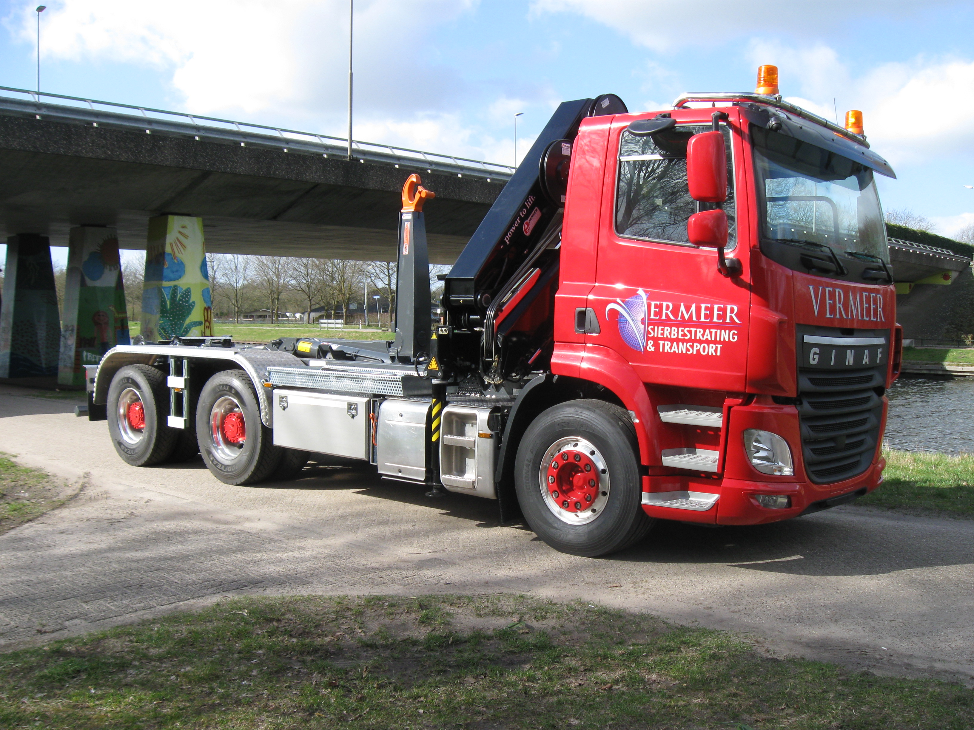 HMF autolaadkraan met een JHS haakarmsysteem voor Vermeer Sierbestrating