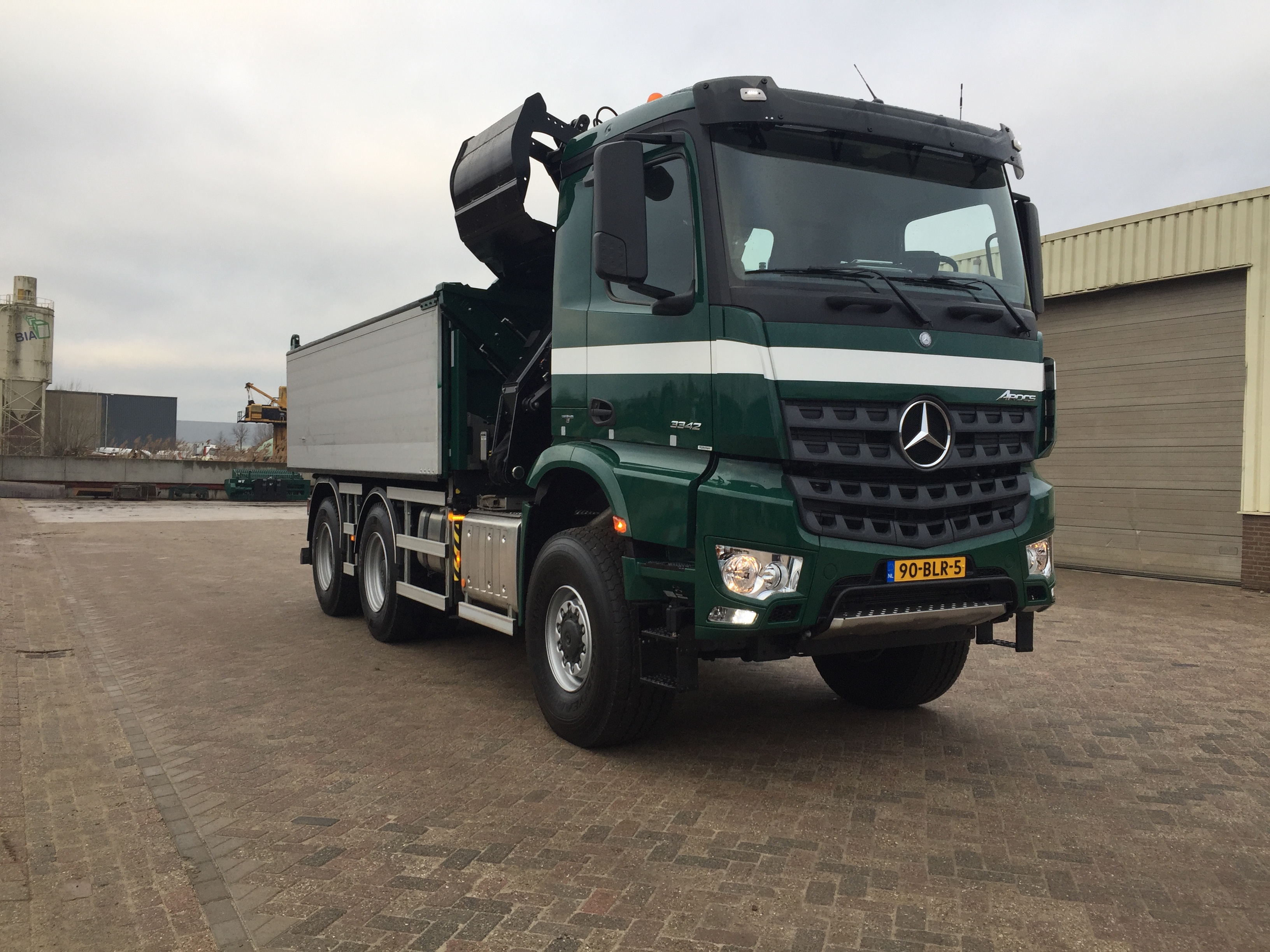HMF autolaadkraan met JHS-HYVA 2-zijden kipper voor Van den Elshout en de Bont