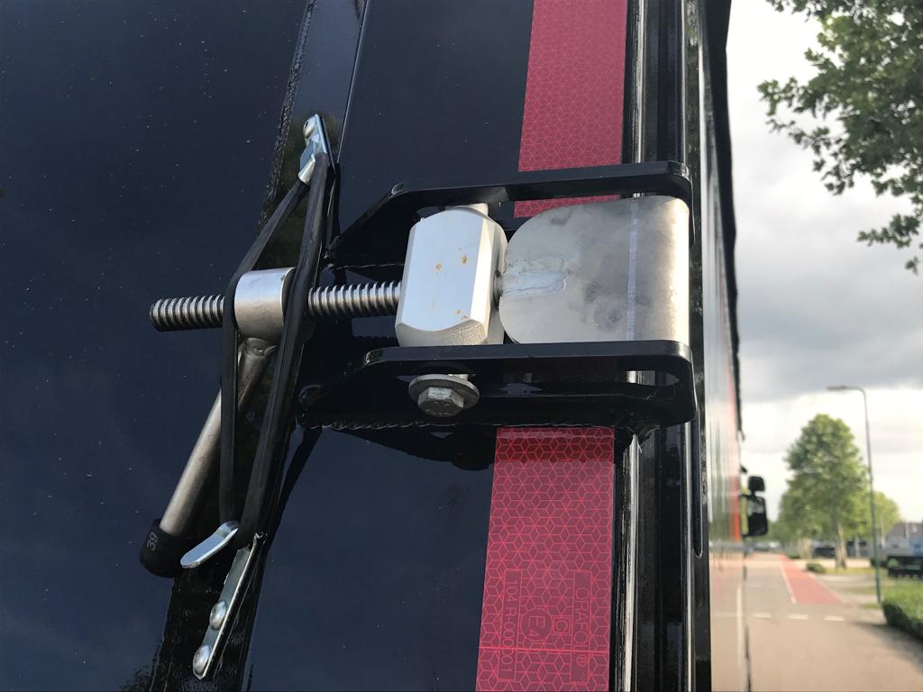 Voorzien van een pneumatisch Fliptop afdeksysteem, kunststof vloer (okuleen) en Alcoa Dura Bright velgen.