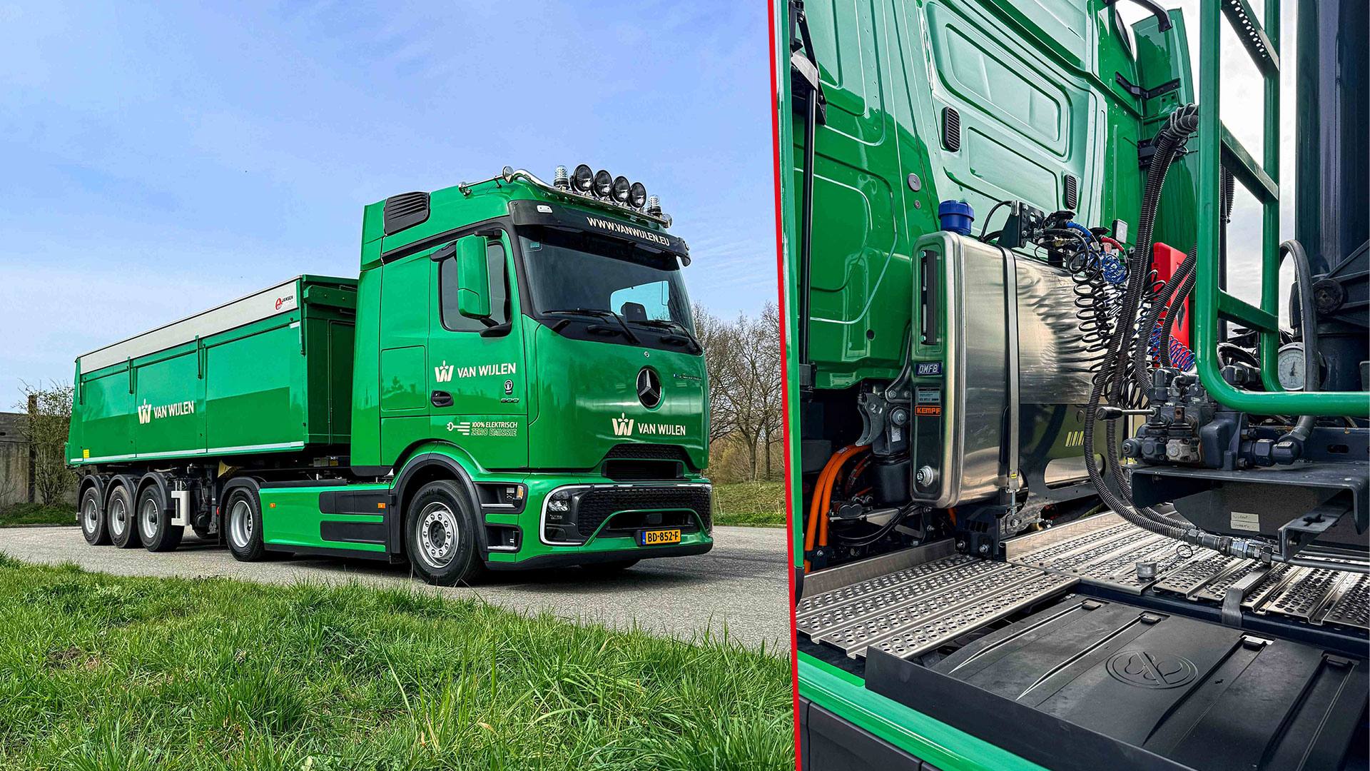 De eActros 600 vormt de emissievrije basis, met een netto maximumvermogen van 600 kW. Deze truck valt binnen emissieklasse Z en CO₂-emissieklasse 5 en is daarmee klaar voor de strengste milieueisen van vandaag en morgen. Met een compacte lengte van 625 cm blijft de combinatie bovendien praktisch inzetbaar in uiteenlopende werksituaties.