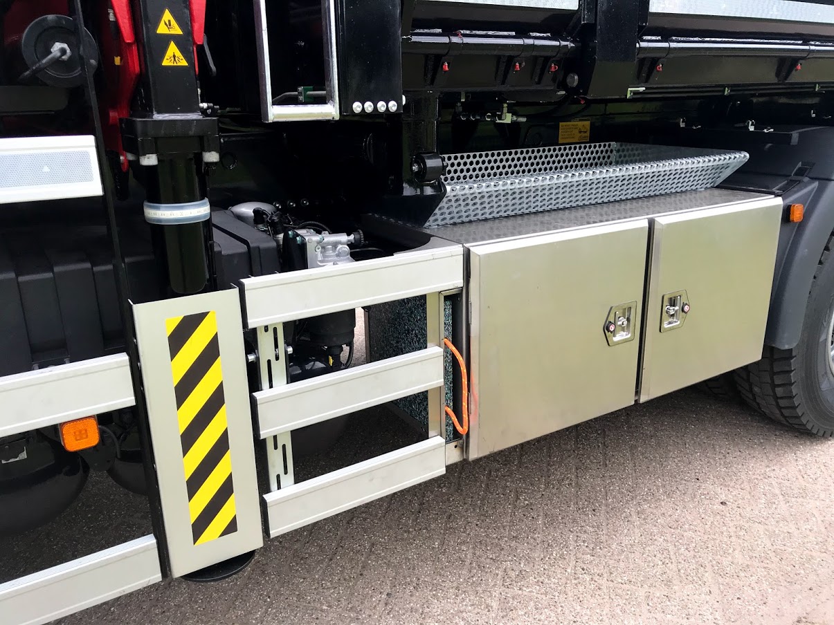 Met hydraulisch zijbord aan de chauffeurszijde.
