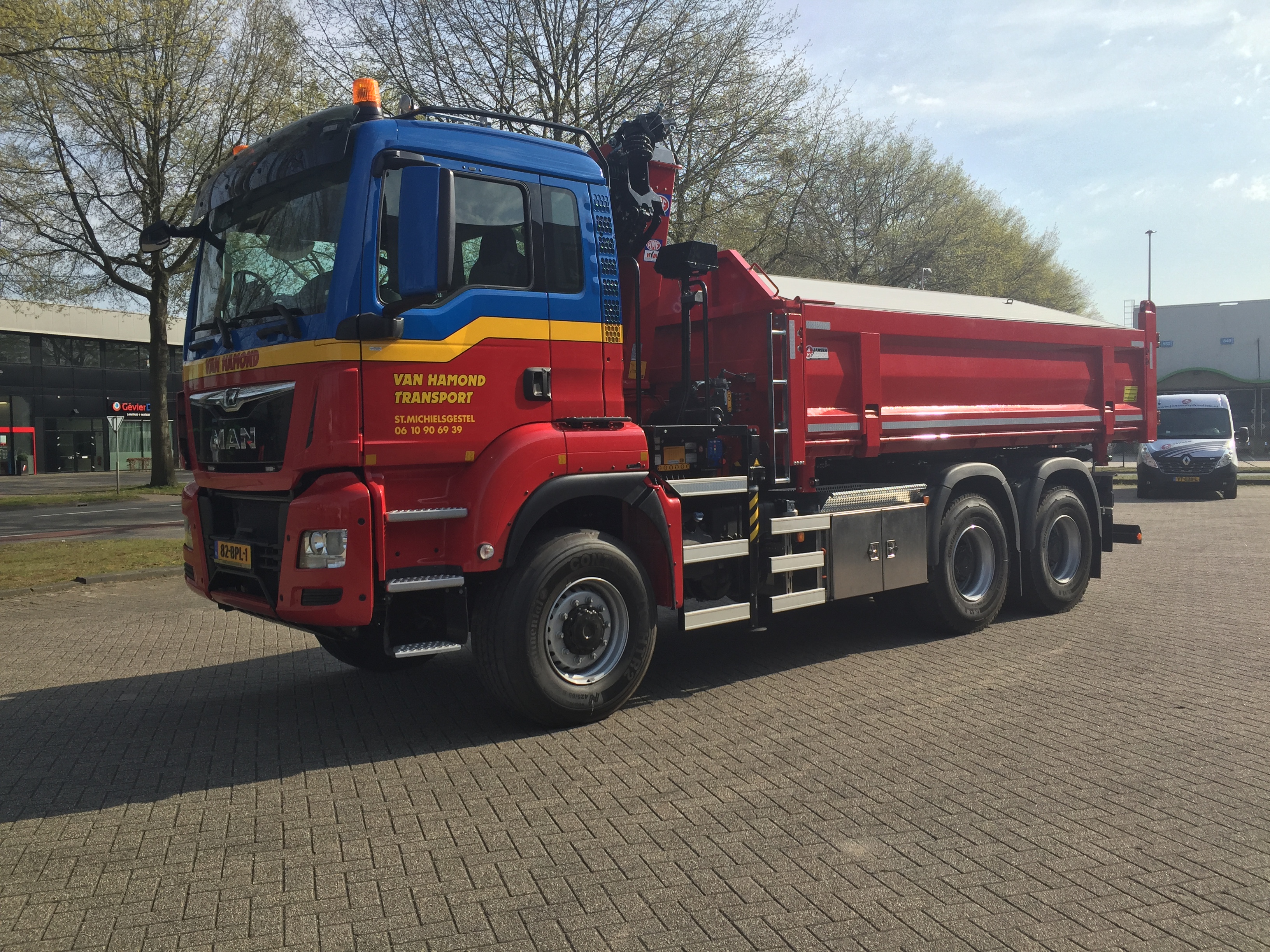 HMF autolaadkraan en een 2-zijden kipper voor Van Hamond Transport