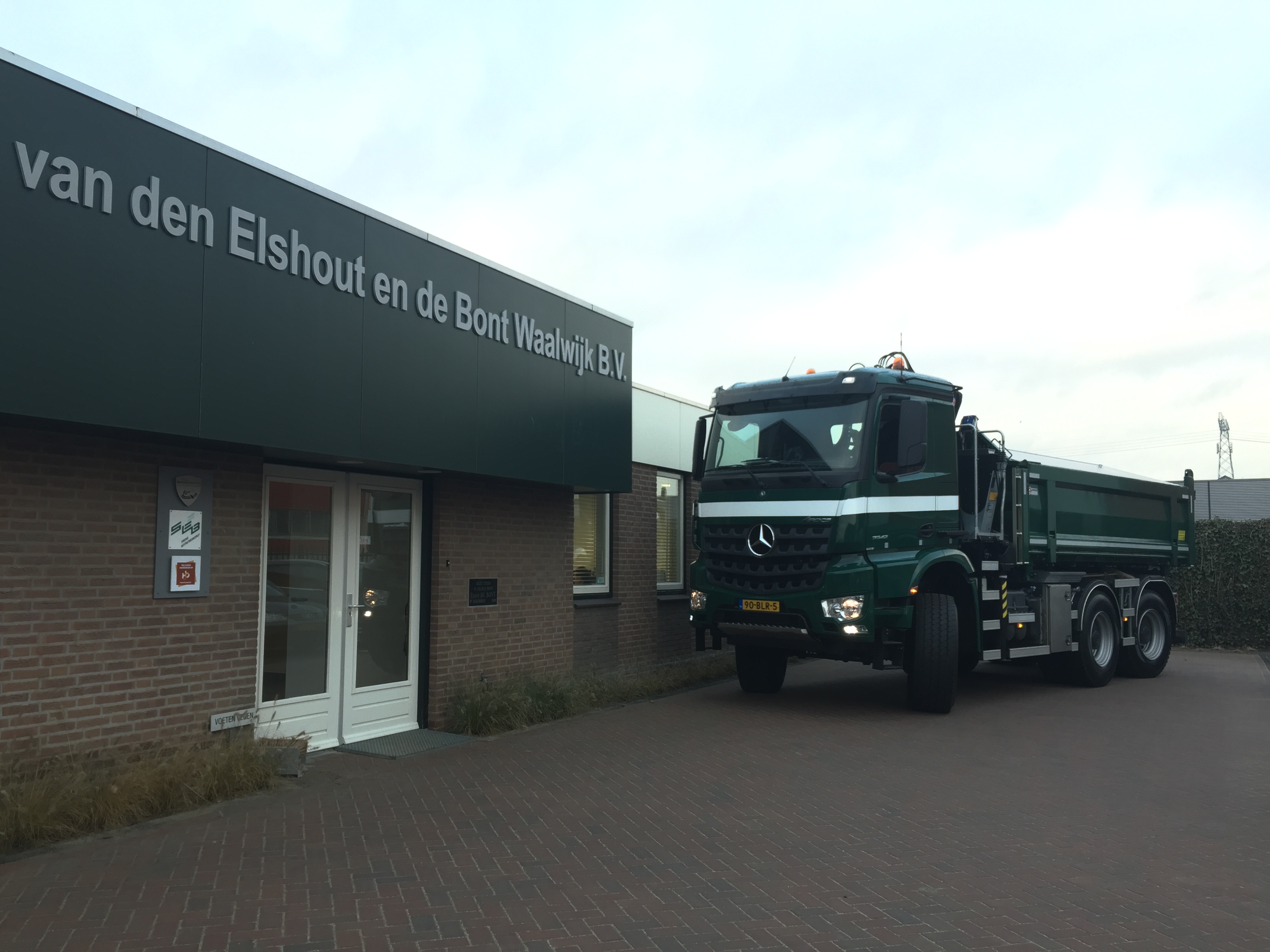 HMF autolaadkraan met JHS-HYVA 2-zijden kipper voor Van den Elshout en de Bont
