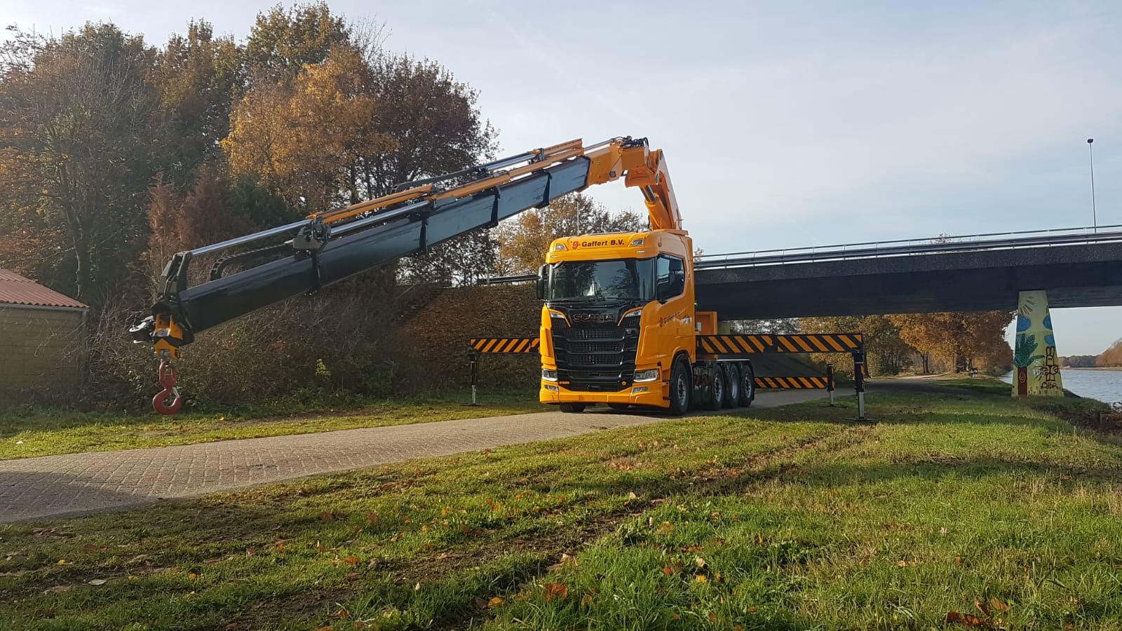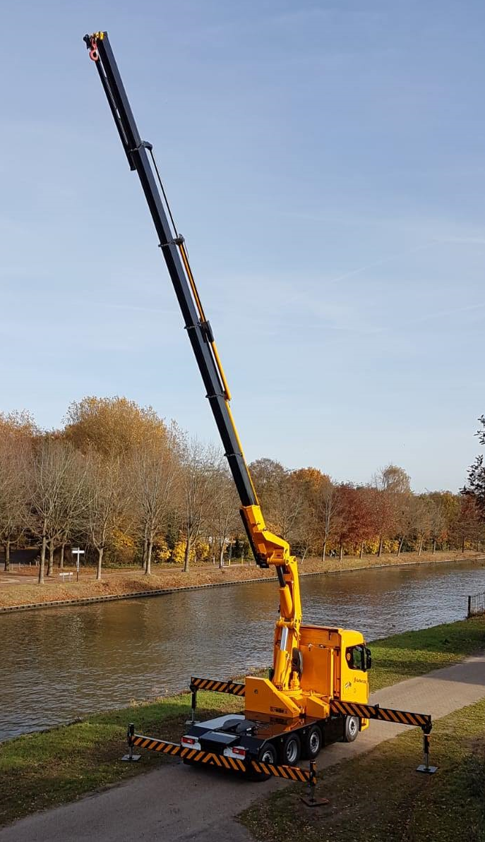Voorzien van een Fly-jib FJ1200 (6x hydraulisch uitschuifbaar) voor een extra reikwijdte en een hydraulische lier 3200 kg.