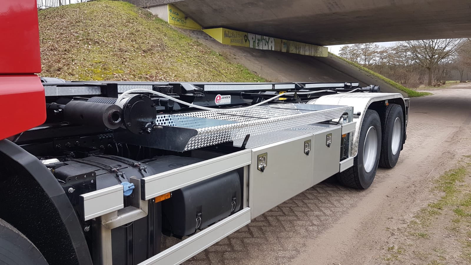 Het stralen en spuiten van de installatie is verzorgd door Jansen Hydrauliek Service.