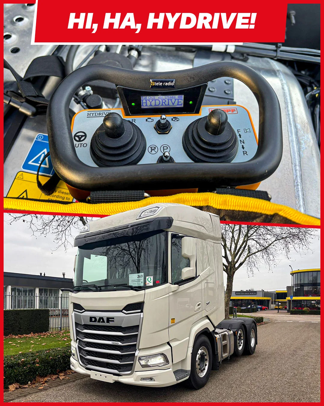 HYDRIVE is een merk onafhankelijke radiografische besturing voor vrachtwagens, ontwikkeld door KEMPF B.V.. Met dit systeem verplaatst de chauffeur de truck veilig op afstand, terwijl hij dicht bij het werk blijft staan. Dat geeft overzicht en controle, precies waar het telt.