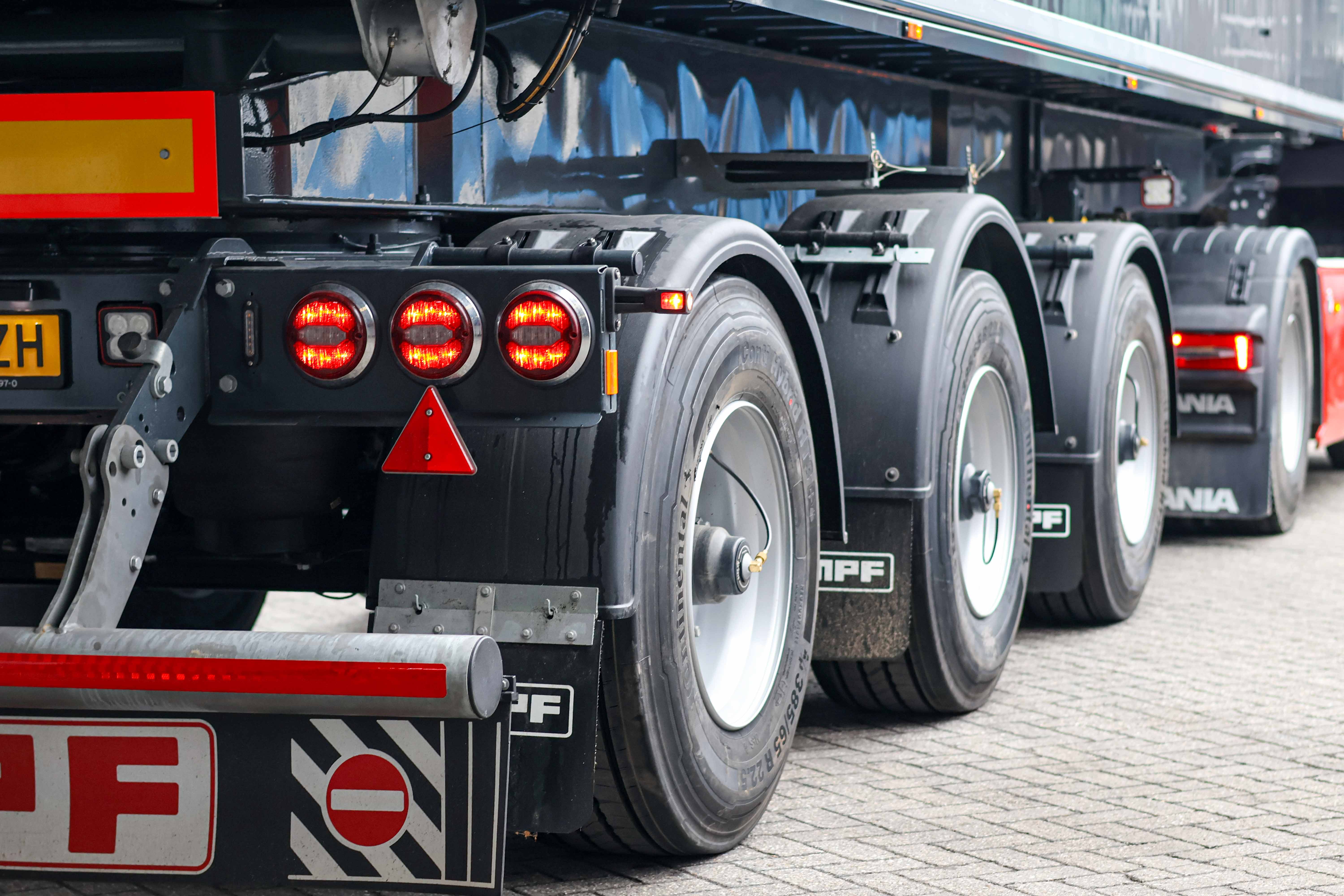 De assen zijn voorzien van het BPW AirSave bandenvulsysteem. Dit systeem houdt de bandenspanning automatisch op peil, wat zorgt voor minder slijtage, lager brandstofverbruik en een langere levensduur van de banden.