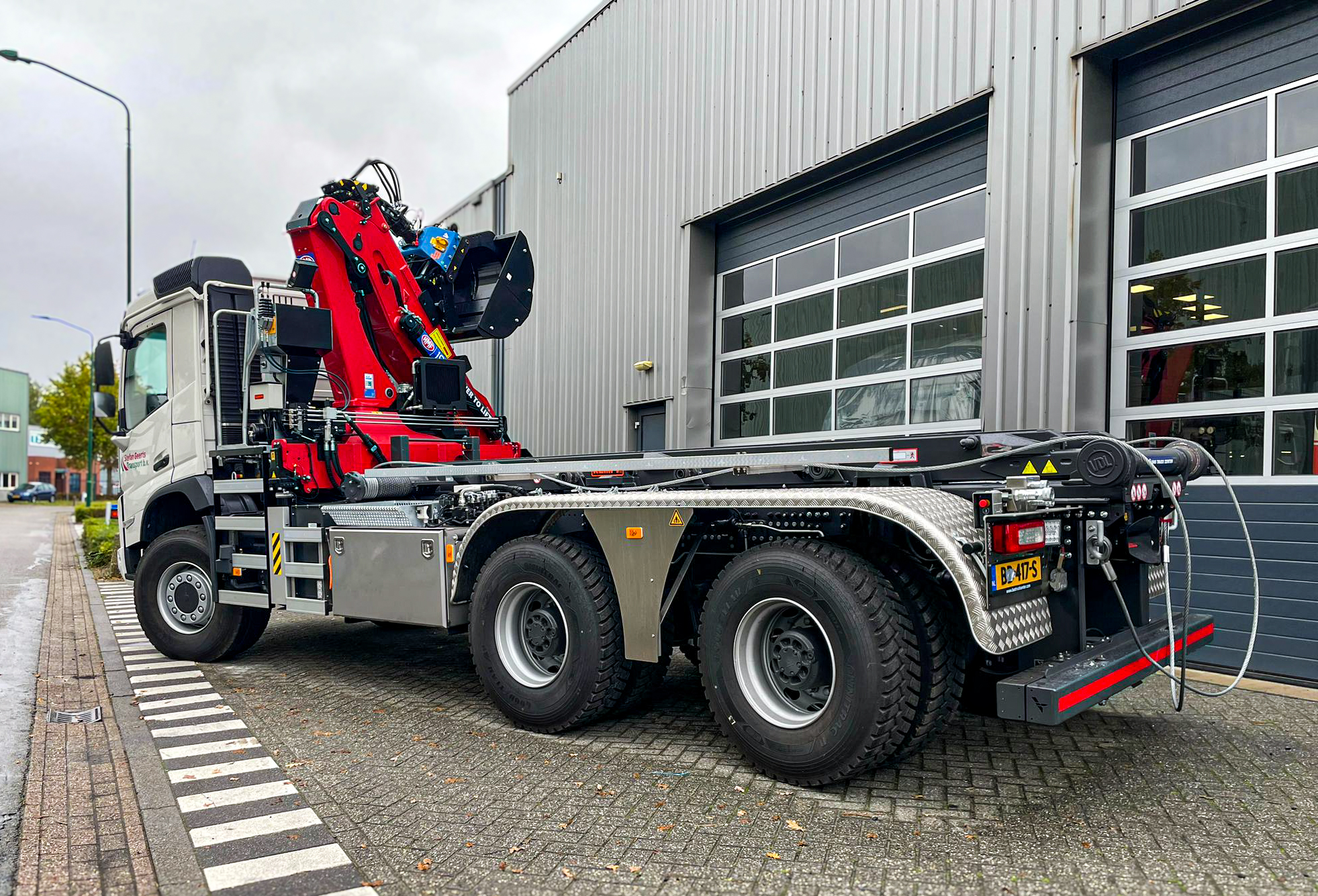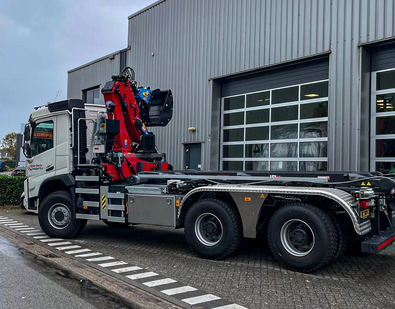 Voor Stefan Geerts Transport B.V. hebben we deze Volvo uitgerust met een VDL kabelsysteem in combinatie met een HMF Group A/S 1943 autolaadkraan.